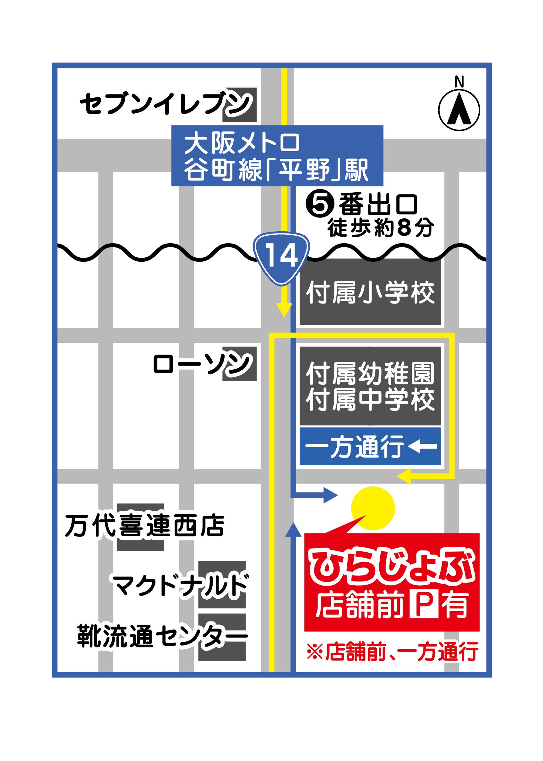 地下鉄平野駅5番出口から内環状線を南450メートル。