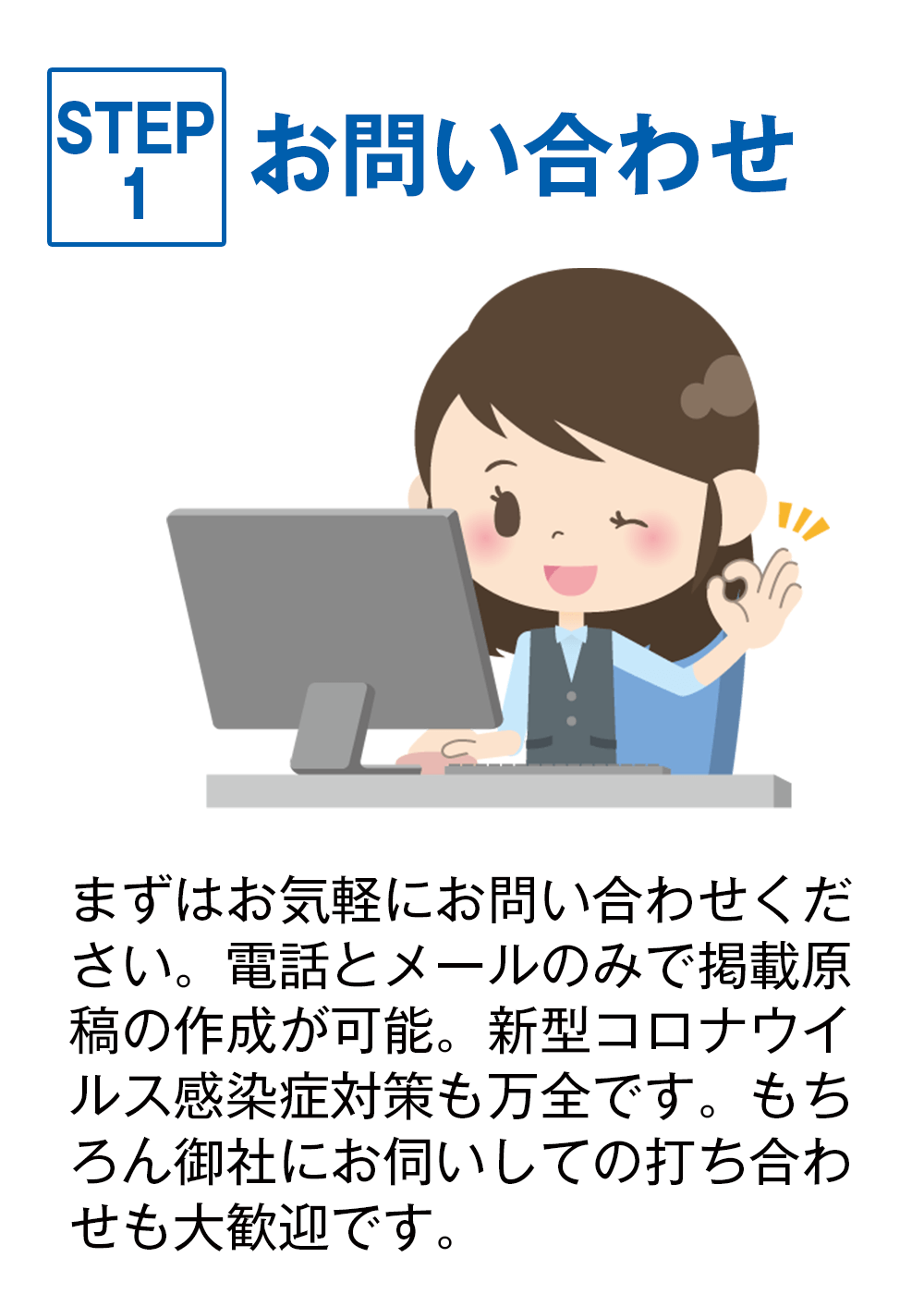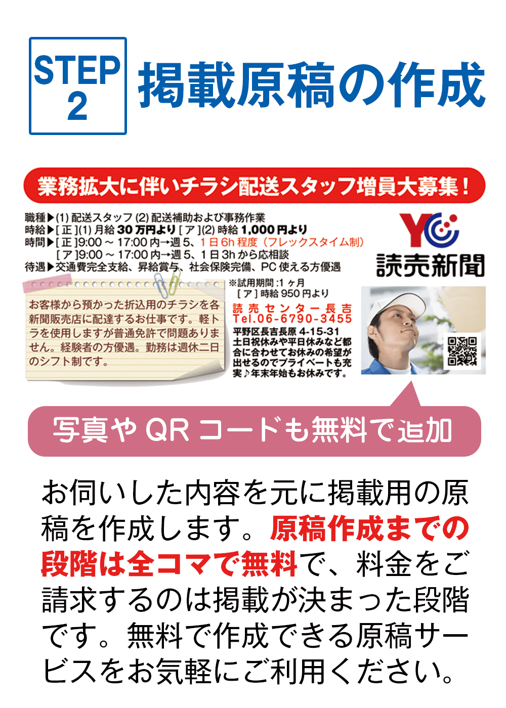 原稿作成込みです。広告は作成にお時間をいただく場合があります。お早めにお申し込みください。