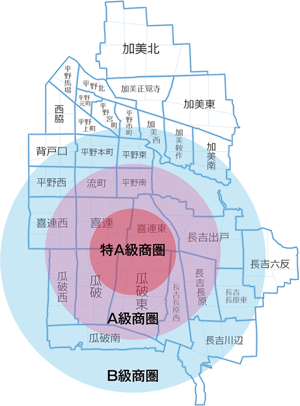B級商圏やその外のエリアへの配布も効果はありますが、やはり大事なのはA級商圏以上の人により多く配布することです。